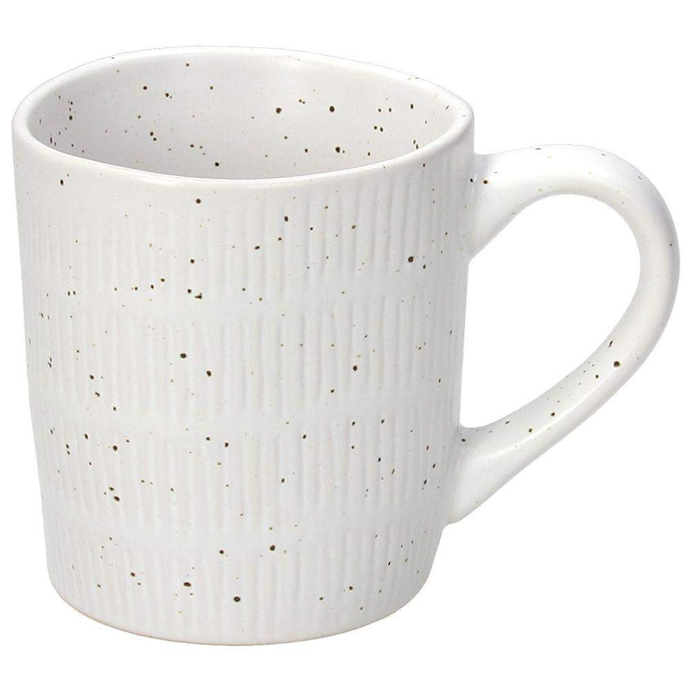 Kamionkowy kubek w matowej bieli, ozdobiony nakrapianiem. Doskonale komponuje się z miseczką z kolekcji Madrid Wabi.