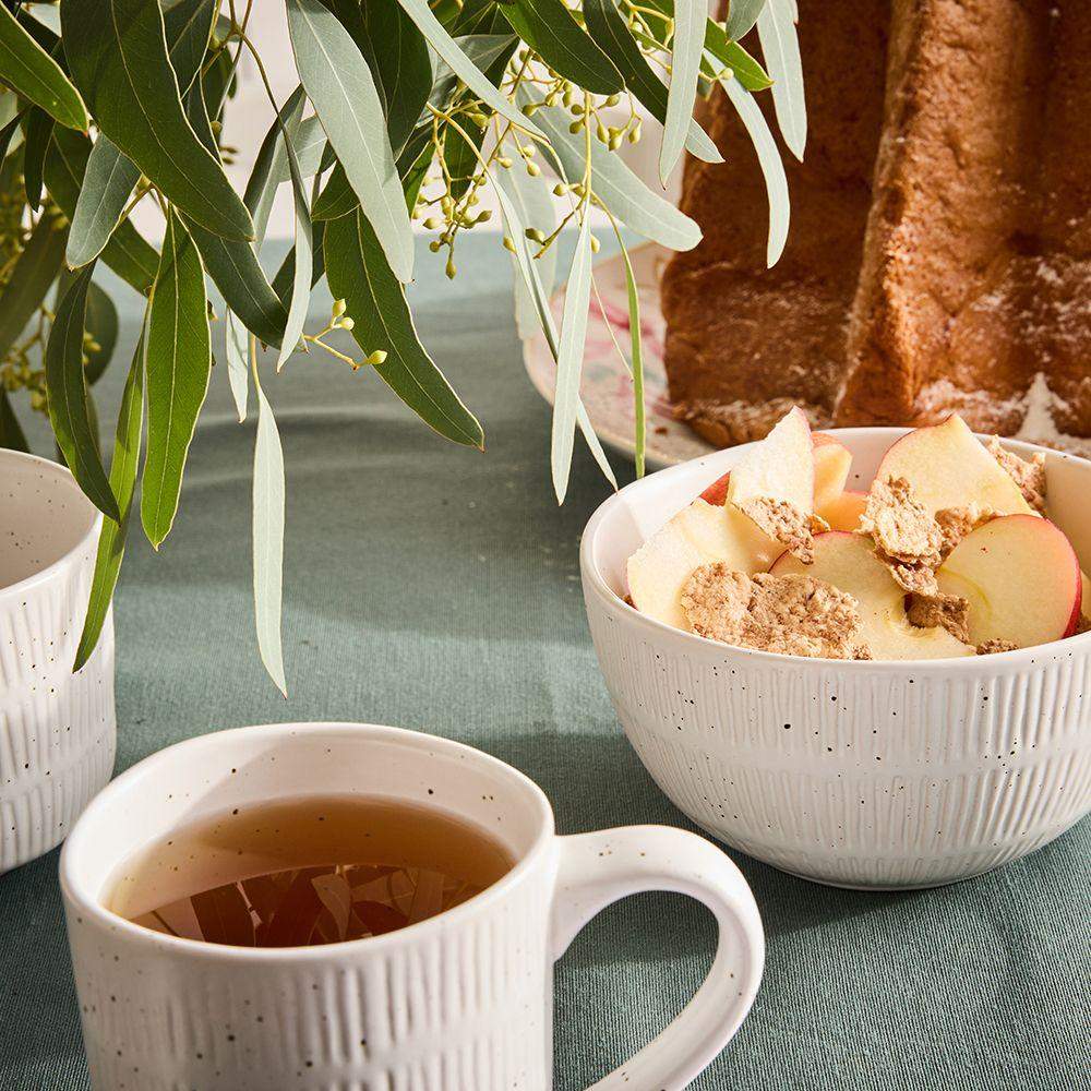 Miseczka wykonana z wysokiej jakości kamionki w matowej bieli, ozdobiona nakrapianiem. Doskonale komponuje się z kubkiem z kolekcji Wabi, tworząc spójny i stylowy zestaw.