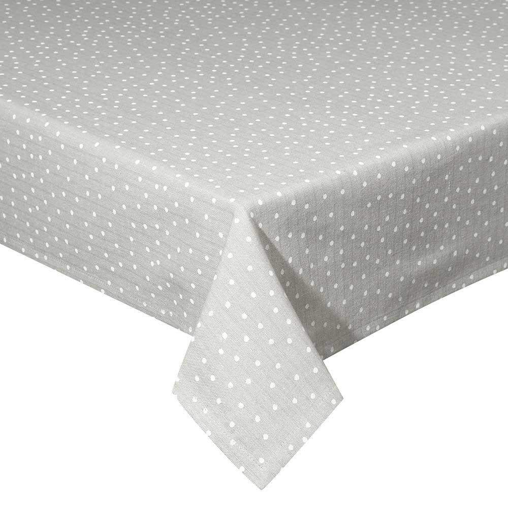 Klasyczny obrus wykonany z wysokiej jakości bawełny w subtelnym, beżowym odcieniu, ozdobiony wzorem w białe groszki.