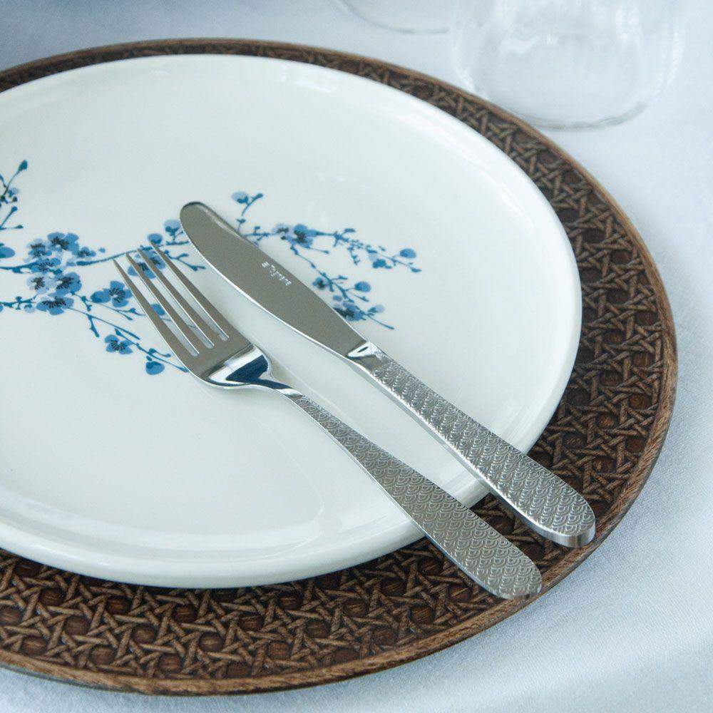 Porcelanowy talerz deserowy z kolekcji Orientale, ozdobiony subtelnym motywem kwitnącej gałązki w odcieniach błękitu.